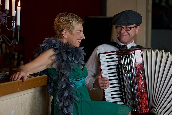 Das Ganze wird begleitet vom virtuosen Spiel des Akkordeonisten Valeriy Khoryshman.